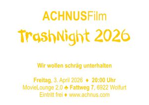 Fr 03.04.2026, von 20:00 bis 23:30 Uhr Kategorie : Film & Kino Achnus Film TrashNight: Filme abseits des Gewöhnlichen![]() Am Freitag, dem 3. April präsentieren wir ab 20:00 Uhr bei unserem Filmfestival „Achnus Film TrashNight 2026“ schräge Filme aus dem deutschsprachigen Raum in unserem Vereinslokal, der ACHNUS Film MovieLounge. Auch dieses Jahr zeigen wir im kleinsten Kino Wolfurts Filme abseits des Mainstreams. Egal ob Animationsfilme wie „Rauchende Kakteen“ oder „Meuterei auf der Bulldock“ oder literarische Kurzfilme wie „Mausoleo delle Viti“ und „Vienna Subway Quickie“, hier wird die Vielfalt gefeiert. Die in Vorarlberg lebende Künstlerin Tania Maria Rodrigues-Peters präsentiert „Conversation with a Narcissist“. Der Kurzfilm feierte erst Anfang März im TiK in Dornbirn seine Weltpremiere. Auch ihr preisgekröntes Musikvideo „Te quiero“ wird zu sehen sein. Preis : Freier EintrittVorverkauf : Freier EintrittErmäßigung : Freier Eintritt Veranstaltungsort Achnus Film MovieLounge Fattweg 7 6922 Wolfurt | Werbung : Ihre Werbung auf dieser Seite! Veranstaltungen Jetzt Ihre Veranstalungen KOSTENLOS in unserem Veranstaltungskalender Netzwerk eintragen! --> weitere Informationen Unser Netzwerk Wussten Sie, das die Informationen auf dieser Internetseite, nicht nur hier auf Bregenz24.at erscheinen, sondern auch auf jeder thematisch und geografisch passenden Internetadresse unseres Domain Netzwerk ausgeliefert werden. Mehr über die Möglichkeiten die dir das RootWeb.EU Domain Netzwerk bieten kann, erfährst du hier erfahre mehr über deine Möglichkeiten! Wussten Sie, das zu unserem Domain Netzwerk auch Veranstaltungskalender.net gehört, einer der größten Veranstaltungskalender in Österreich, auf dem Sie kostenlos Ihrer Veranstaltungen eintragen können. www.veranstaltungskalender.net |